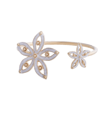 Il bracciale Royale ripropone in argento le creazioni della nostra Collezione Royale di Alta Gioielleria. In questa versione con fiore grande centrale e polvere di madreperla per un tocco elegante e raffinato, un gioiello che saprà farsi notare con classe.
