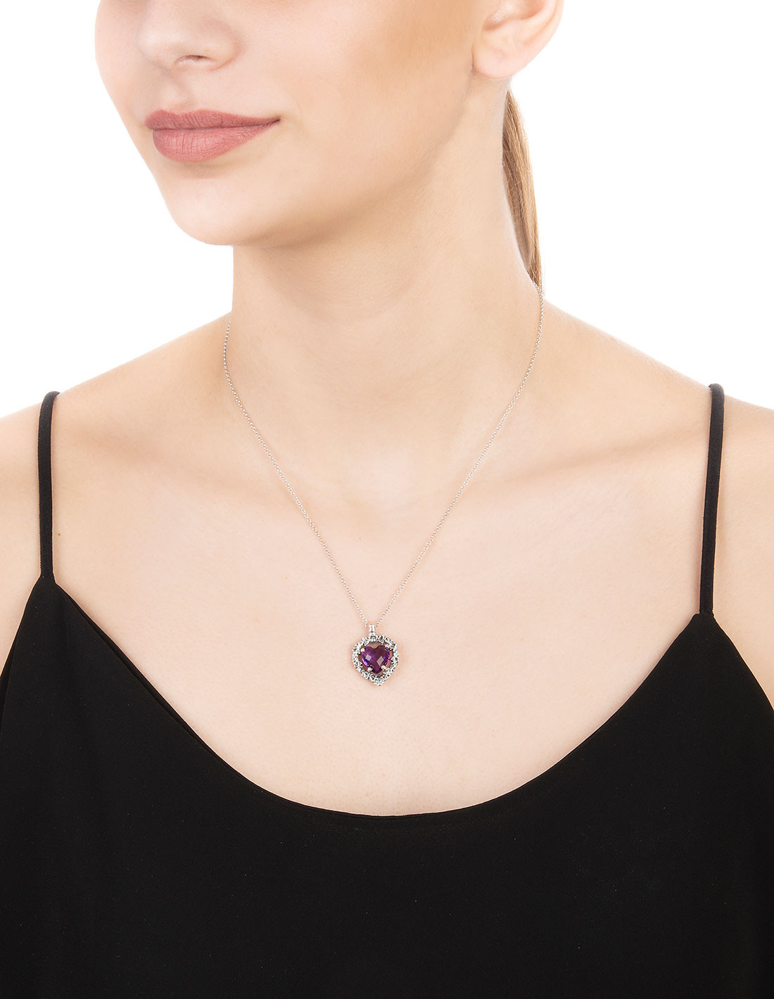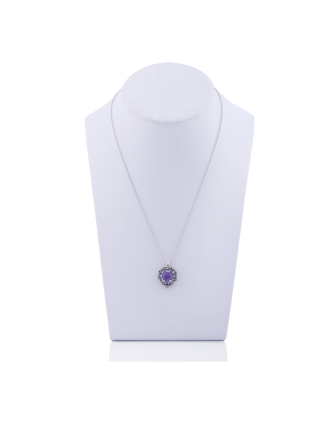 Nella coerenza delle forme e delle linee abbiamo abbinato un topazio semiprezioso di colore viola, accuratamente selezionato.