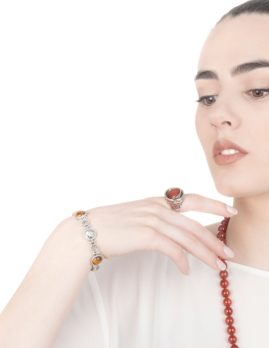- Anello in argento 925/1000 e madreperla cabochon di colore rosso