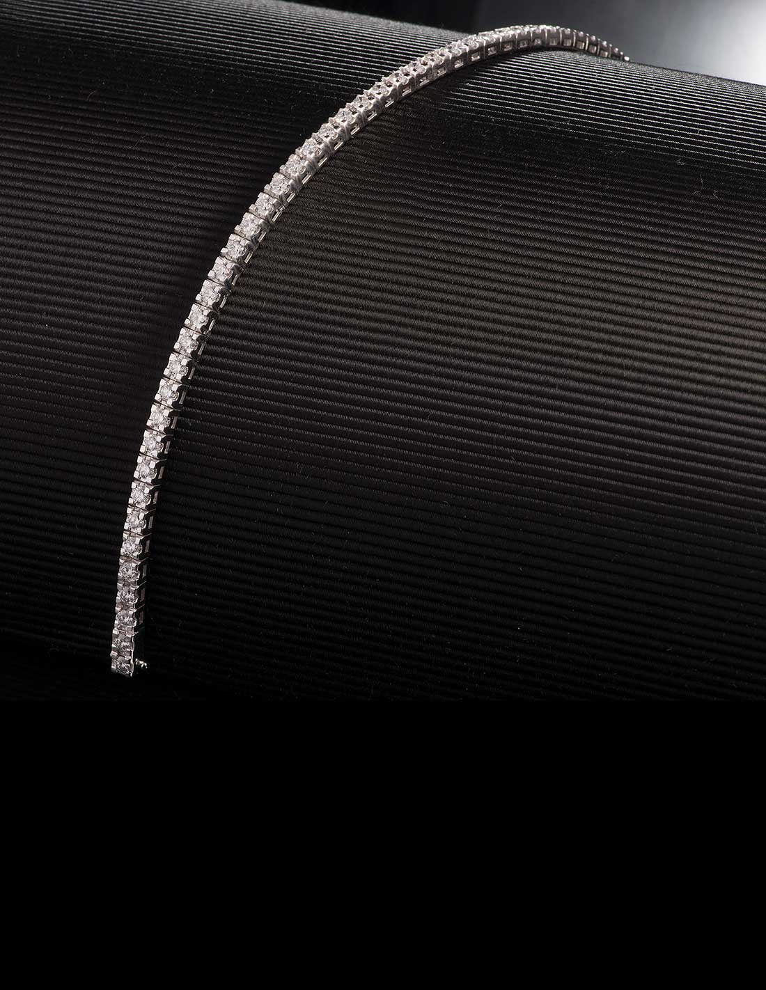 L'iconico bracciale in oro bianco stile tennis esalta lo splendore dei diamanti per un'eleganza mai fuori moda.