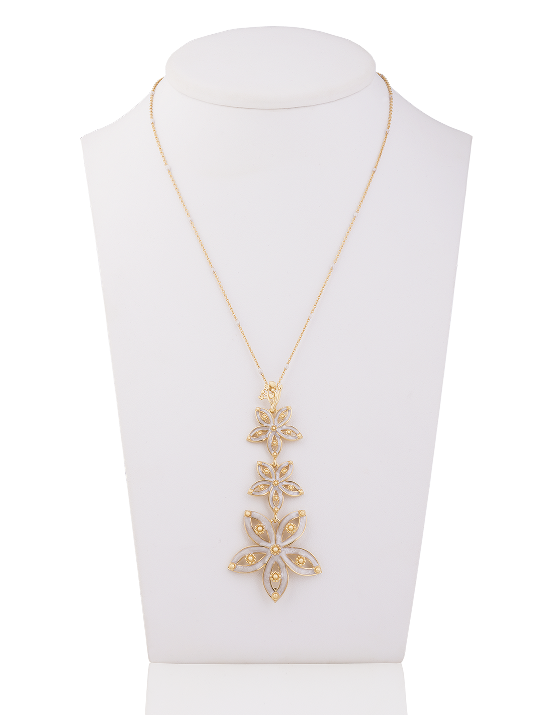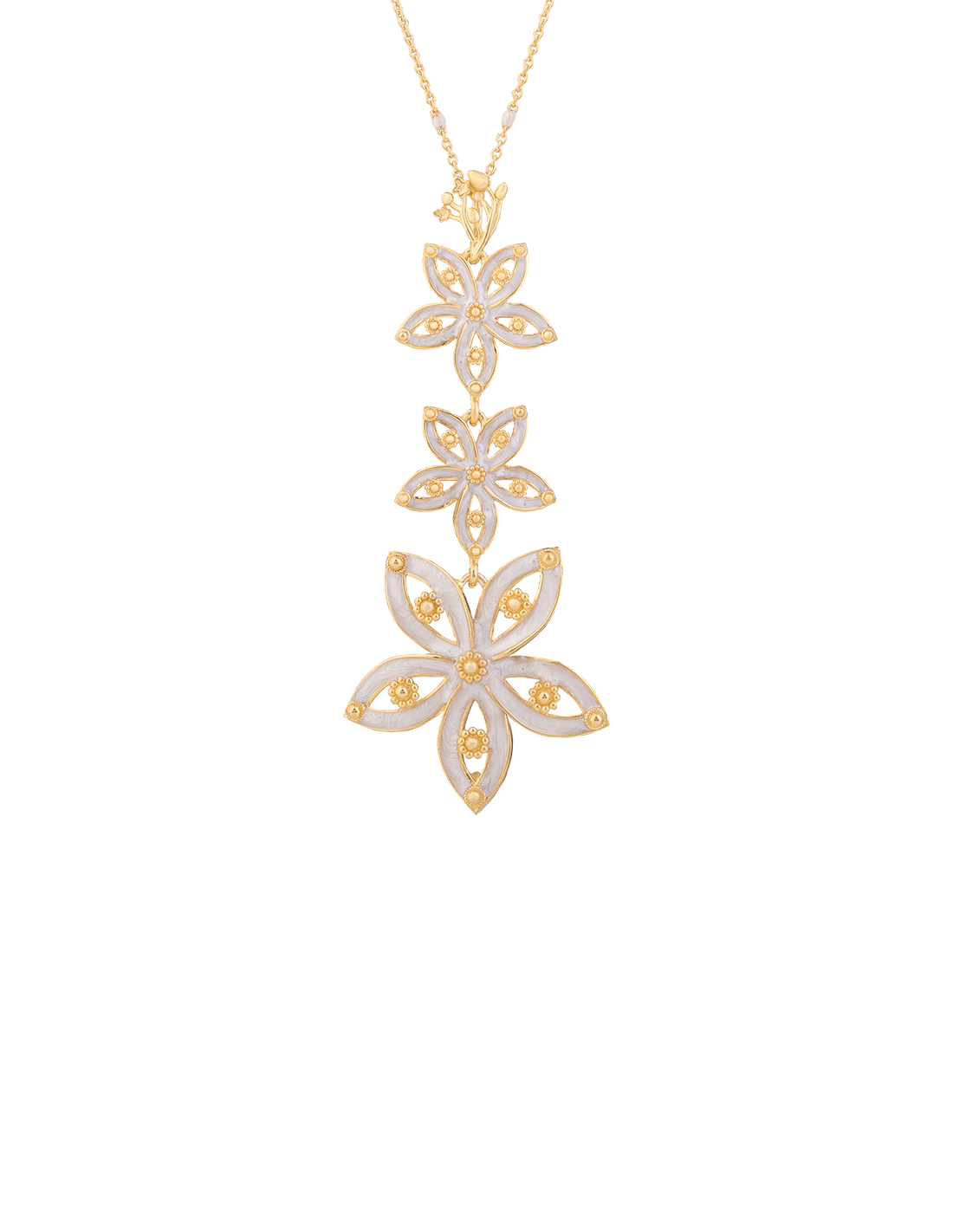 Il ciondolo Royale ripropone in argento le creazioni della nostra Collezione Royale di Alta Gioielleria. In questa versione con polvere di madreperla per un tocco elegante e raffinato, un gioiello che saprà farsi notare con classe.