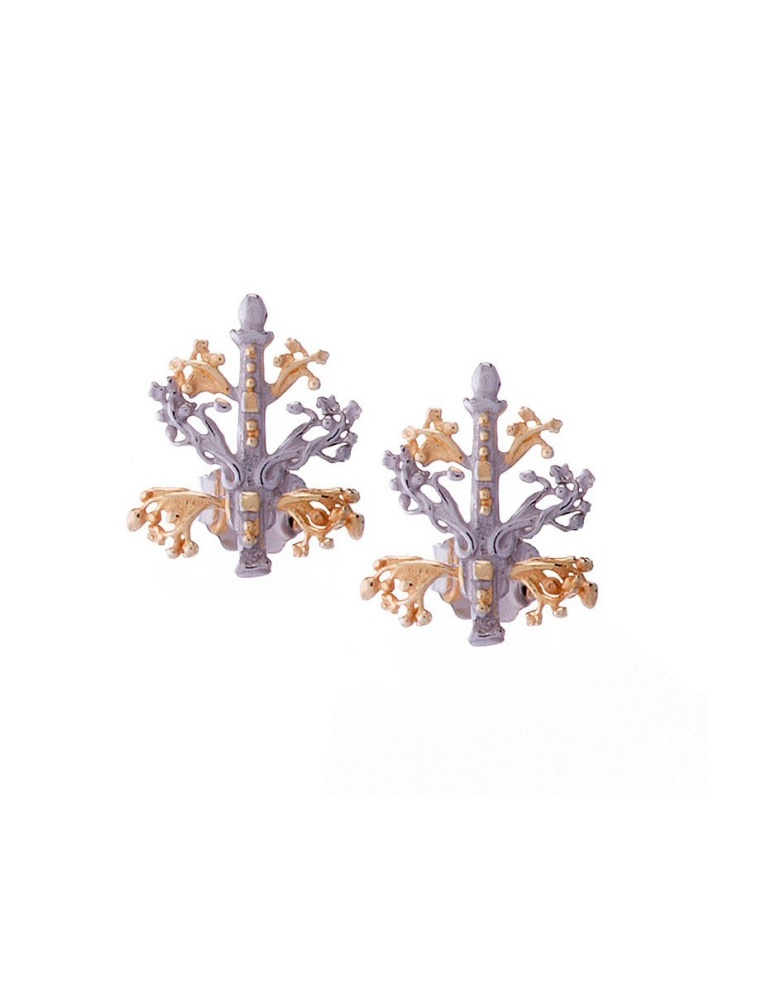 Gli orecchini riproducono l’Albero della Vita, tavola tratta dal Liber Figurarum di Gioacchino da Fiore, abate profeta di Calabria. L’albero come dono simboleggia l’augurio (e il portafortuna) di una vita costruita su solide basi (tronco e radici) e che sia piena ed intensa (rami, foglie e frutti). Un simbolo molto potente che riguarda tutti gli aspetti della vita a 360 gradi.